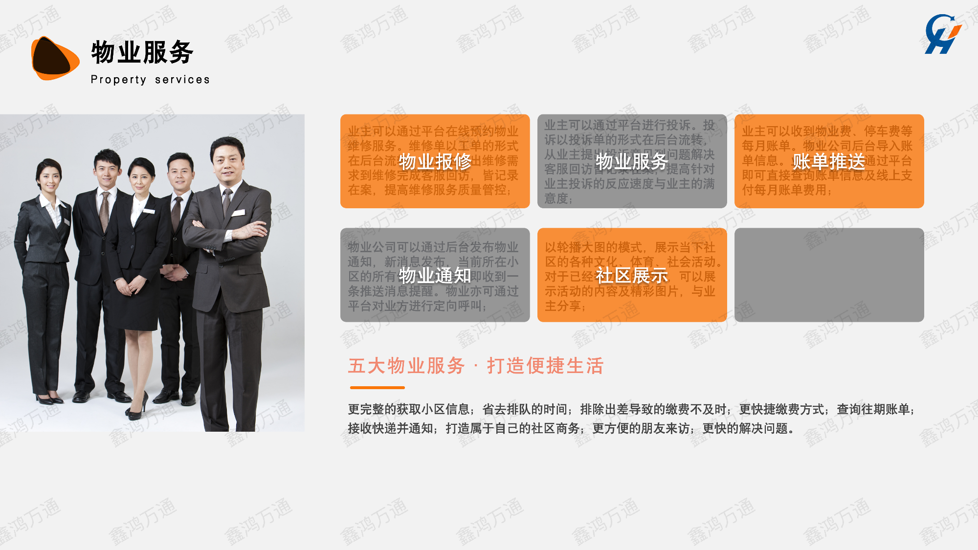 更完整的獲取小區(qū)信息;省去排隊(duì)的時(shí)間;排除出差導(dǎo)致的繳費(fèi)不及時(shí);更快捷繳費(fèi)方式;查詢往期賬單;接收快遞并通知;打造屬于自己的社區(qū)商務(wù);更方便的朋友來(lái)訪;更快的解決問(wèn)題。