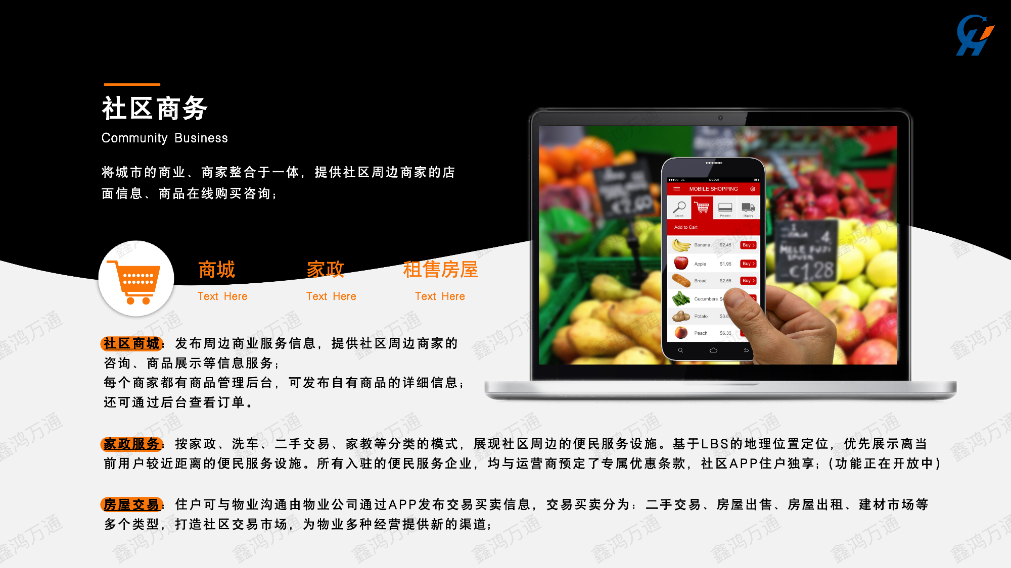 將城市的商業(yè)、商家整合于一體,提供社區(qū)周邊商家的店面信息、商品在線購買咨詢;社區(qū)商城:發(fā)布周邊商業(yè)服務(wù)信息,提供社區(qū)周邊商家的咨詢、商品展示等信息服務(wù);每個(gè)商家都有商品管理后臺,可發(fā)布自有商品的詳細(xì)信息;還可通過后臺查看訂單。家政服務(wù):按家政、洗車、二手交易、家教等分類的模式,展現(xiàn)社區(qū)周邊的便民服務(wù)設(shè)施?;贚BS的地理位置定位,優(yōu)先展示離當(dāng)前用戶較近距離的便民服務(wù)設(shè)施。所有入駐的便民服務(wù)企業(yè),均